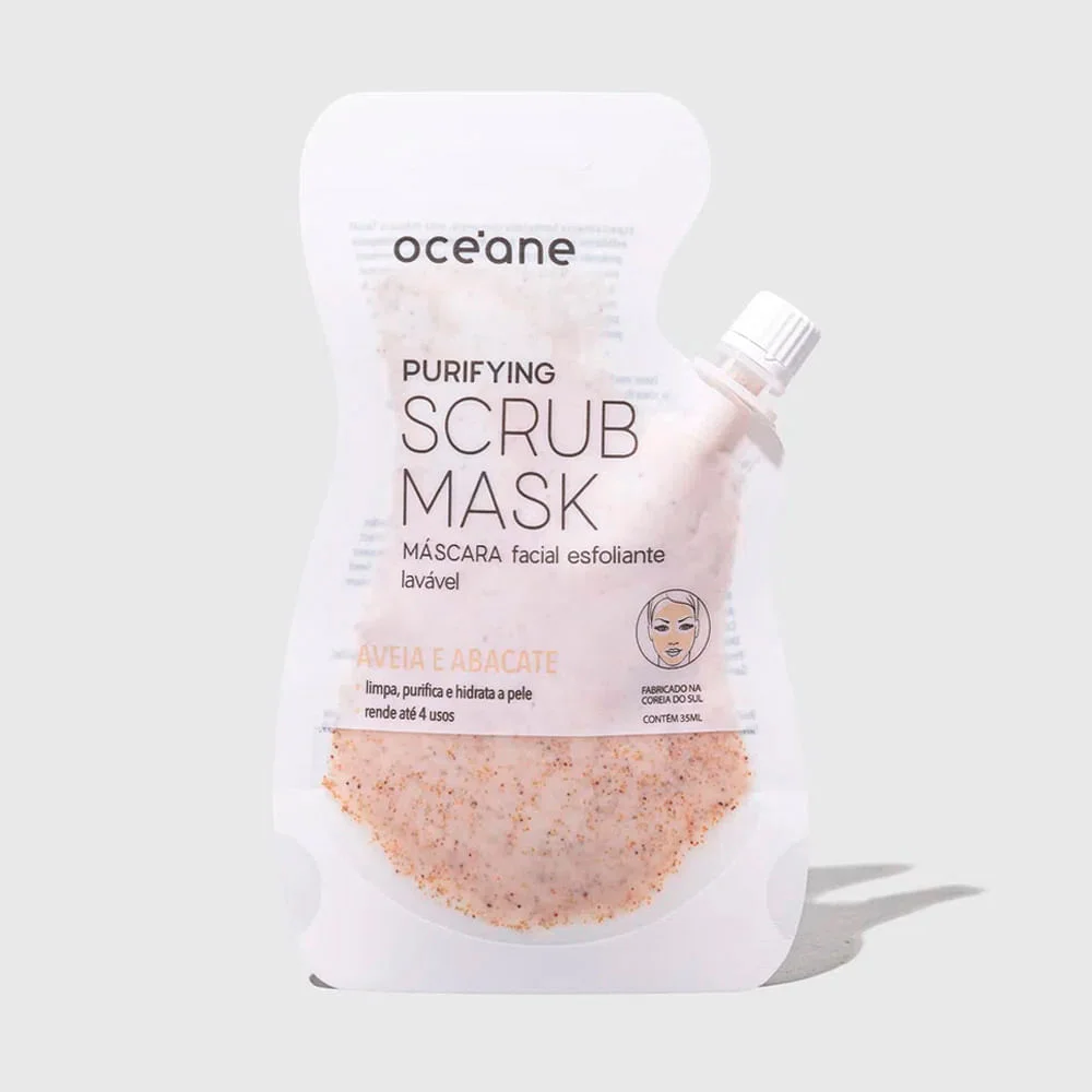 Característica principais PDP: A Máscara Facial Esfoliante de Aveia e Abacate possui embalagem com tampa e rende até 4 usos. Purifying Scrub Mask limpa profundamente, hidrata e auxilia na renovação celular, pode ser usada 1 vez por semana.